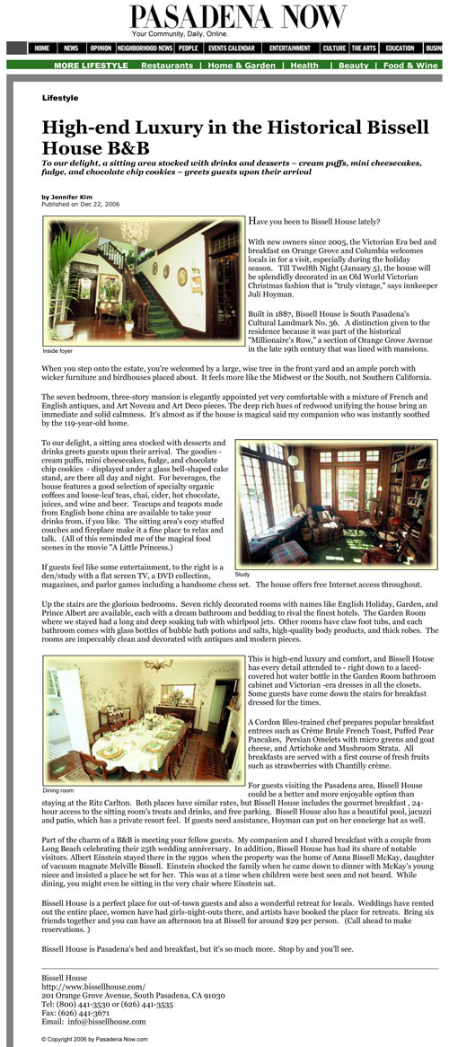 High-end Luxury in the Historical Bissell House B&B (Pasadena Now)